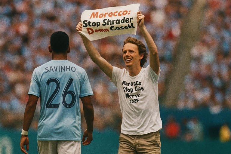 Le mercredi dernier, au cœur de Philadelphie, s’est déroulé un événement qui a captivé l’attention mondiale, bien au-delà des prouesses sportives attendues. En pleine Coupe du Monde des Clubs, un manifestant a interrompu le match entre Manchester City et le Wydad Casablanca, brandissant un message cinglant : « Maroc, arrêtez de tuer les chiens et les chats ». Ce geste audacieux, survenu devant plus de 67 000 spectateurs, a instantanément transformé le terrain de jeu en une scène de revendication sociale. Ainsi, pour quelques minutes, l’attention a été détournée du sport pour embrasser une cause universelle.
