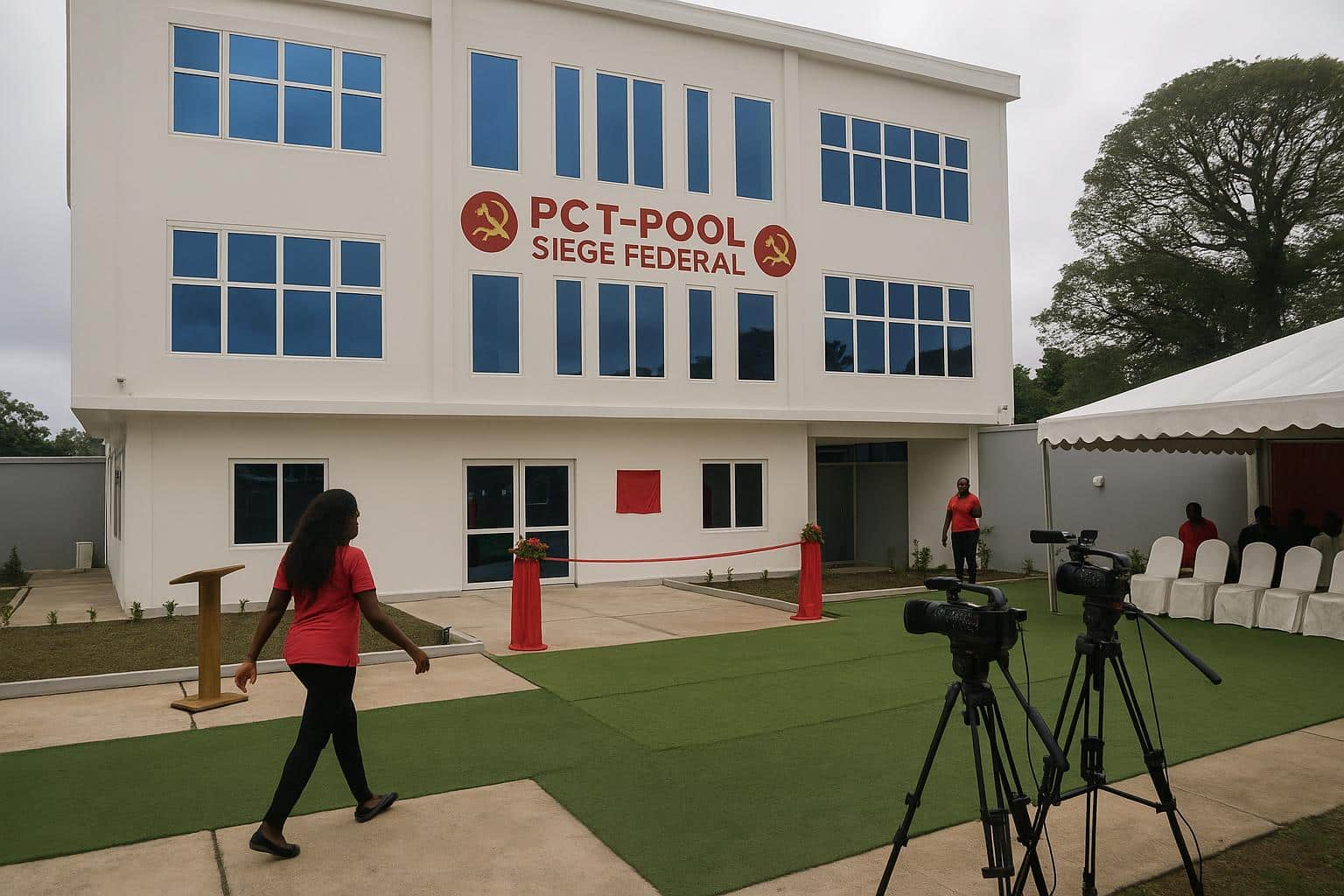 Le siège de la fédération PCT-Pool illustre la stratégie d’implantation consolidée de la majorité : visibilité, formation, services aux militants et équipements capables de soutenir un scrutin moderne et transparent.
