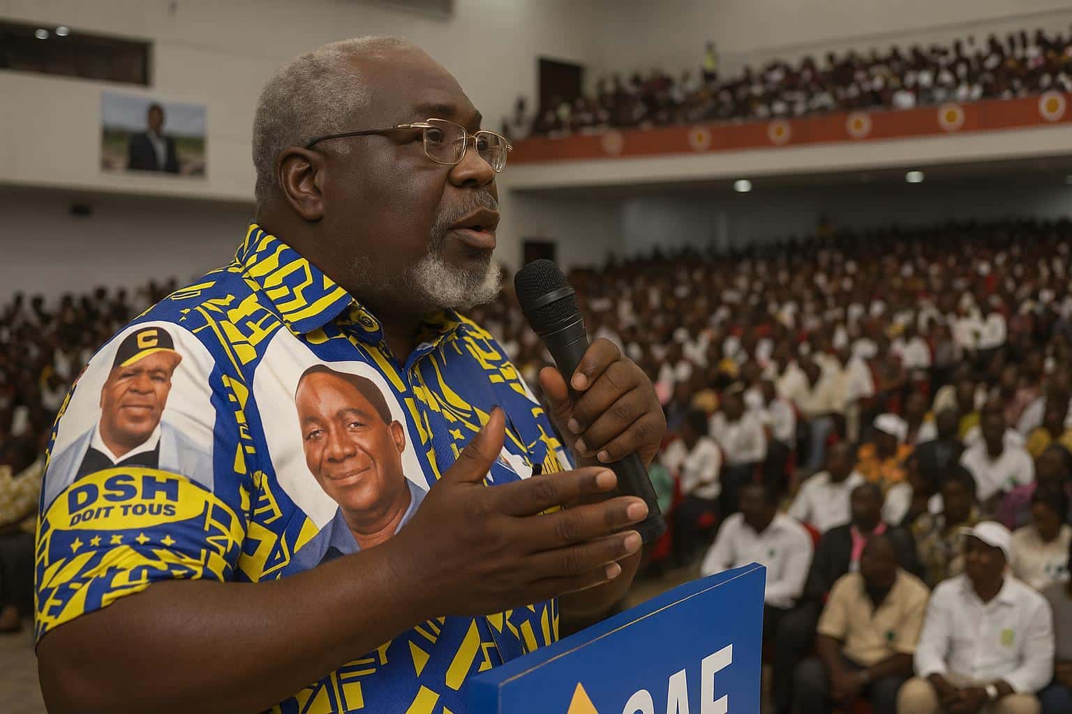 Le coordonnateur général, Digne Elvis Okombi-Tsalissan, est entré sous les ovations d’une fanfare tonitruante, relançant une audience que trois heures d’attente n’avaient pas totalement refroidie; signe, selon les organisateurs, d’une motivation qui dépasse les aléas protocolaires.