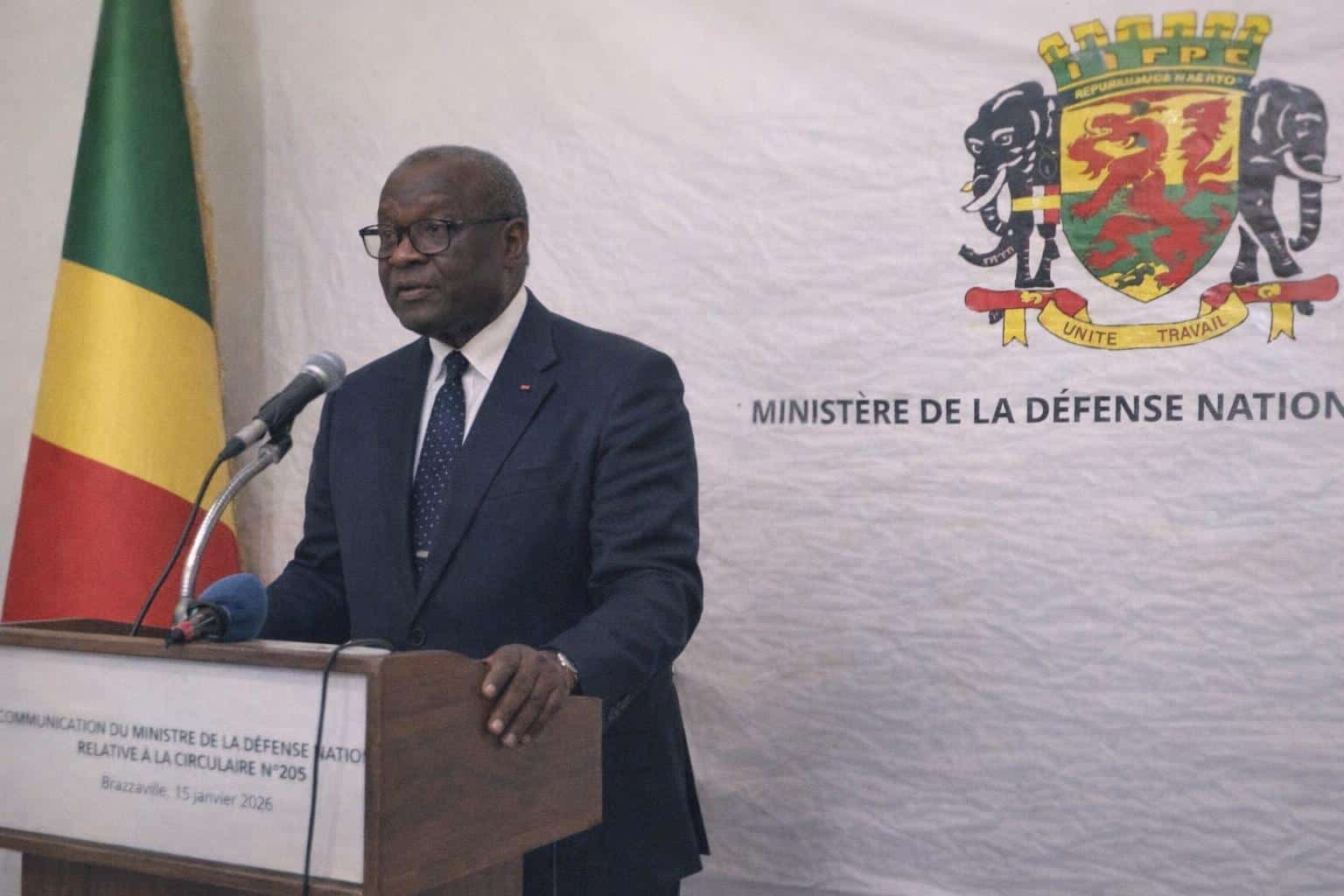 Repères cités : loi n°31-2019 (10 décembre 2019) ; PND 2022-2026 ; loi de finances 2026. Quatre axes : évaluation des structures ; textes organiques et statuts ; formation pilotée par le chef d’état-major ; réserves et chaîne logistique renforcées. (Source : communication du ministre Charles Richard Mondjo, 15 janvier)